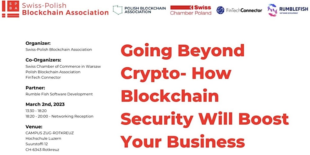 Join me tomorrow on live event: "Going beyond crypto - how blockchain security will boost your business" in Rotkreuz, Switzerland!